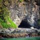 Dari jauh, tampak rongga hitam di dinding batu mulut gua yang terbuka menghadap laut. Orang-orang di sini menyebutnya Gua Anti Jomblo.