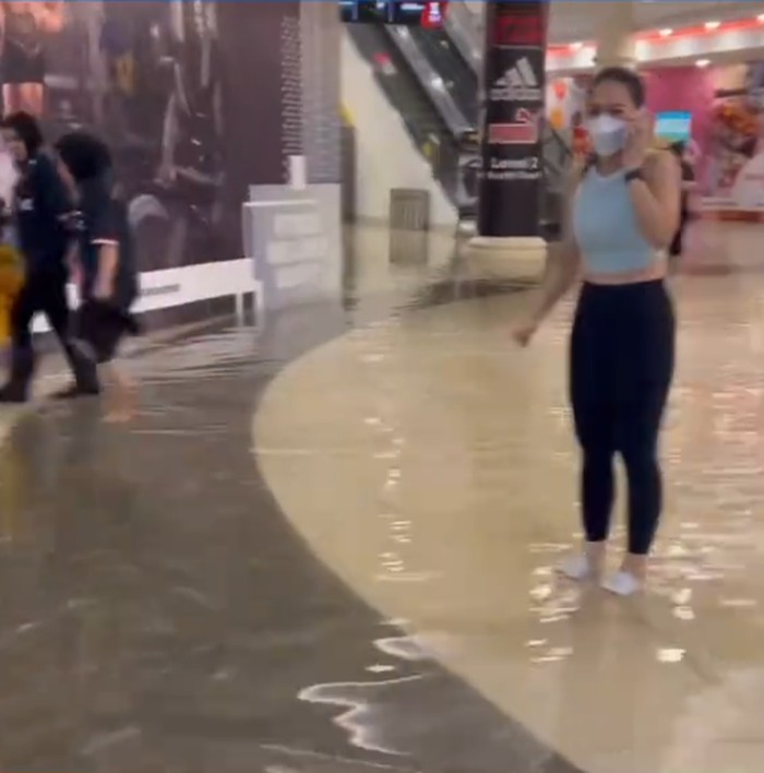 Dalam video itu, air banjir terlihat mengalir di lantai bawah mal. Pengunjung yang sedang berbelanja harus mengarungi air setinggi mata kaki hingga lutut. Toko-toko yang terdampak berada di Lantai 1 zona Selatan.